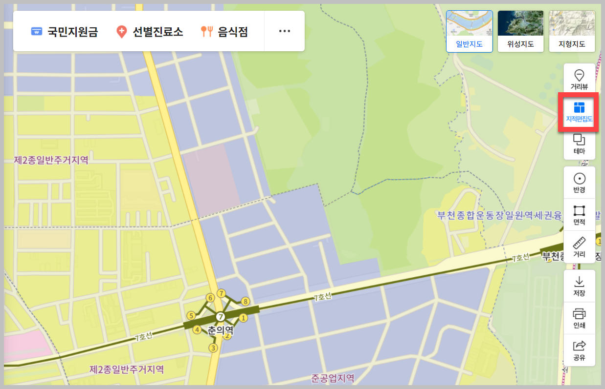 네이버 지도에서도 다양한 정보를 제공하고 있습니다. 네이버에서는 한참 전부터 지적도를 제공하고 있습니다.