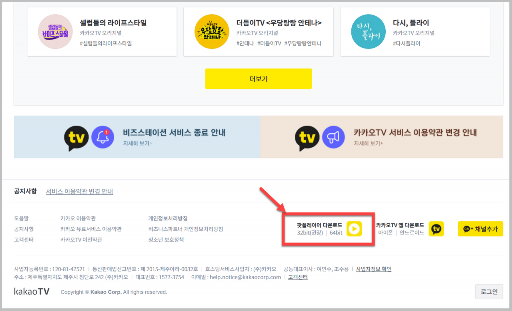 Daum potplayer를 다운로드하려면 카카오티비 홈페이지로 접속하면 됩니다.
