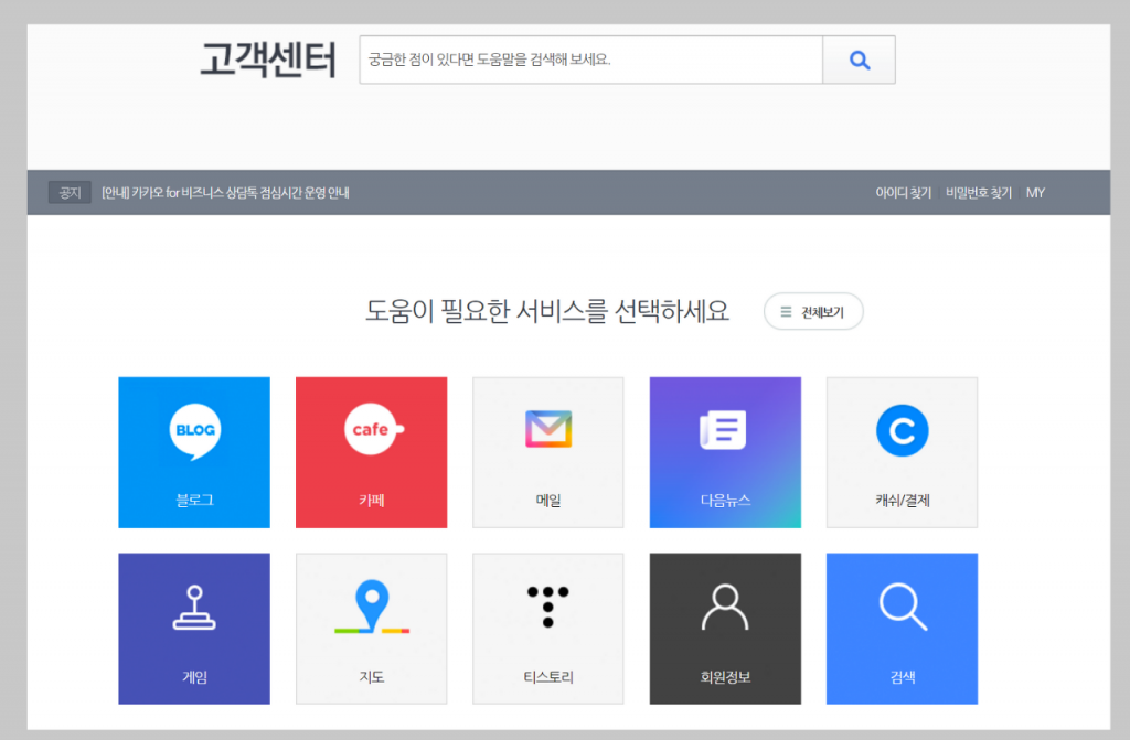 다음을 이용하다가 문제가 발생하는 경우, 대부분의 문제는 고객센터에서 해결할 수 있습니다.