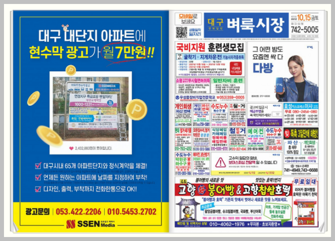 그리고 가판대에 생활정보지가 항상 놓여있었는데 이제는 골목 어귀든 사람이 많이 다니는 곳이든 생활정보지를 찾는 것이 너무 힘이 듭니다. 아무도 찾지 않기 때문에 그런 것 같아요. 하지만 생활정보지가 완전히 망했을까요? 그것은 아닙니다. 벼룩시장에 있는 줄광고들이 그대로 인터넷으로 옮겨졌습니다. 바로 오늘 소개할 대구벼룩시장 신문 홈페이지처럼 말이지요.