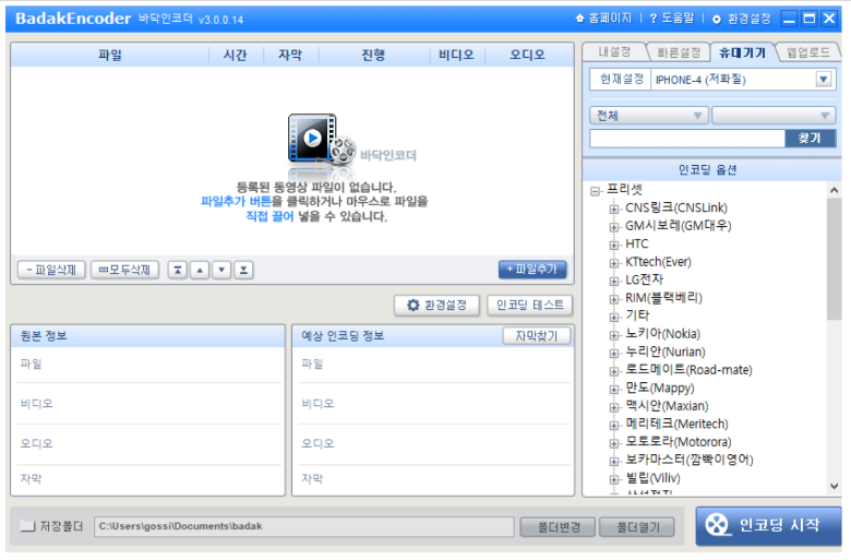프리셋을 보면 이 소프트웨어가 얼마나 오래된 것인지 알 수 있습니다. 아이폰 4 프리셋이 마지막으로 나오고 있네요. 오랜 시간 동안 업데이트가 되지 않았음을 알 수 있습니다. 또한 다른 프리셋에서는 오랜만에 보는 브랜드도 많이 나오네요.