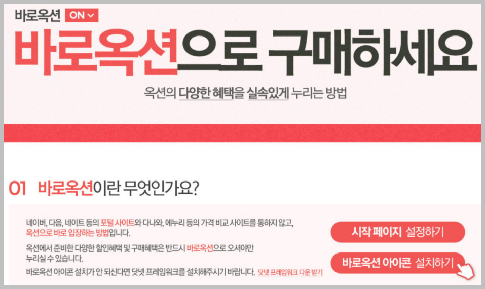 바로 옥션은 네이버 다음 네이트 등의 포털사이트와 다나와 에누리 등의 가격비교 사이트를 통하지 않고 옥션으로 바로 입장하는 것을 의미합니다. 옥션에서 준비한 다양한 할인 혜택 및 구매혜택은 바로옥션으로 오셔야만 누릴수 있었습니다. 그것을 위하여 바로옥션 아이콘 설치하기 기능이 제공이 되었습니다.