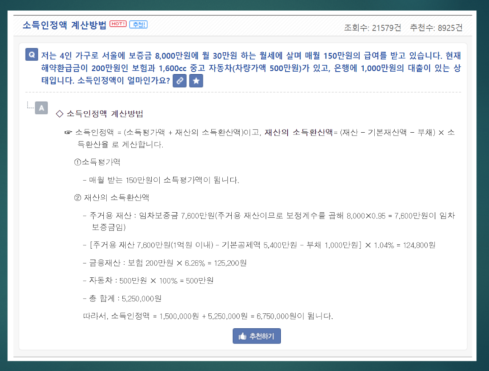 소득 인정액 계산방법 보기