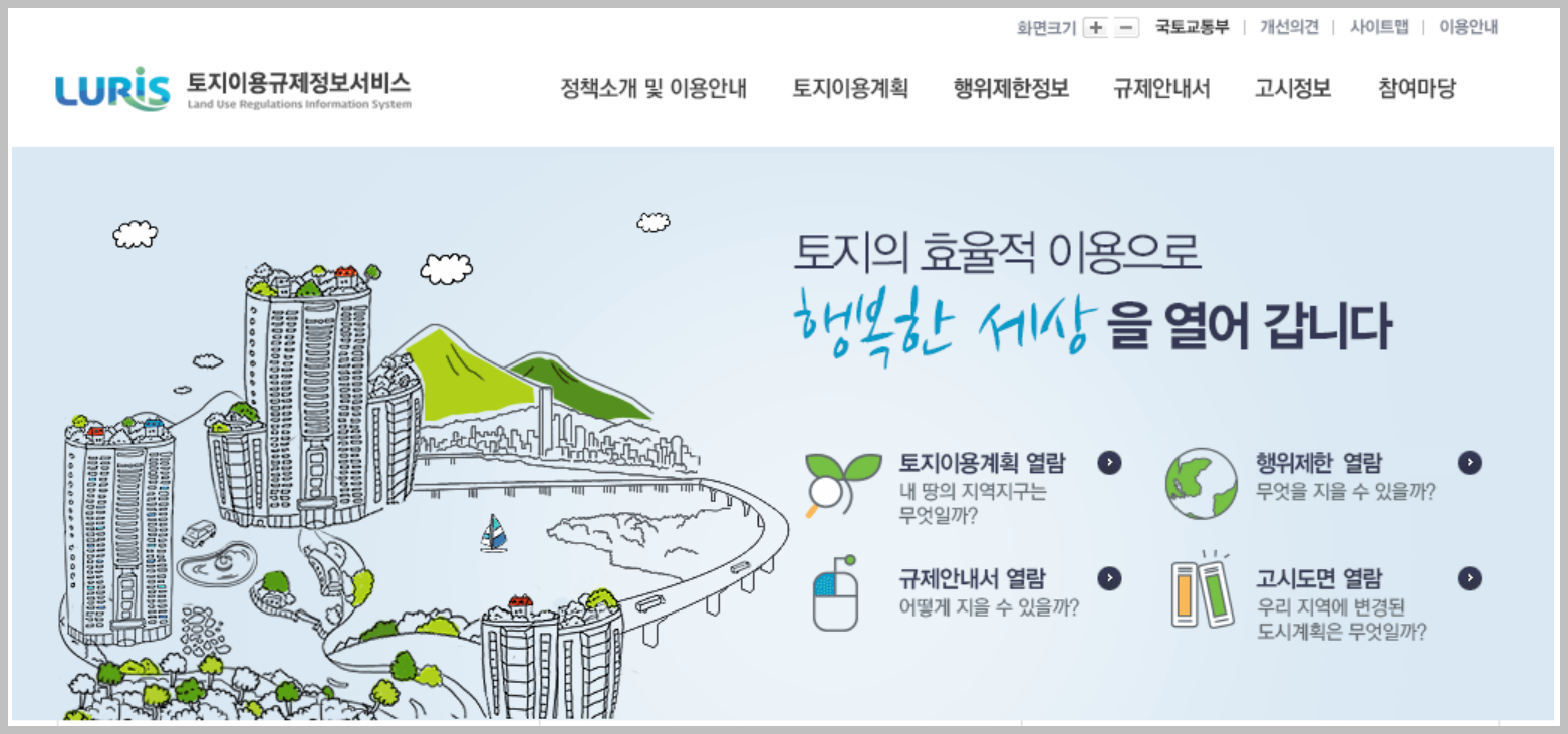 토지이용규제 정보서비스 ( LURIS ) 홈페이지