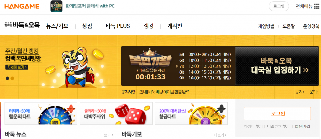 최근에 다시 한번 찾아보니 한게임 오목은 Hangame에서 바둑과 함께 서비스를 다시 하고 있는 것 같습니다. 위 링크를 통해 바둑앤오목으로 바로 이동할 수 있습니다. 저는 아직 안해봤지만 과거와 비슷하지 않을까 생각이 듭니다. Hangame 로그인이 있으신 분들은 한번 해보시는 것도 나쁘지 않을 것 같네요.