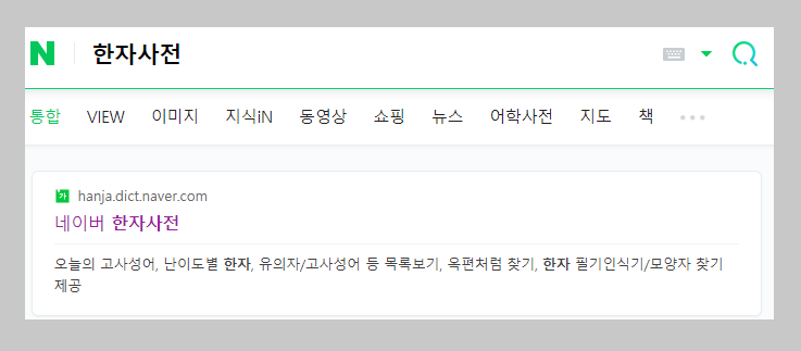 위 화면은 네이버에서 '한자사전'이라고 검색을 하면 나오는 화면입니다.