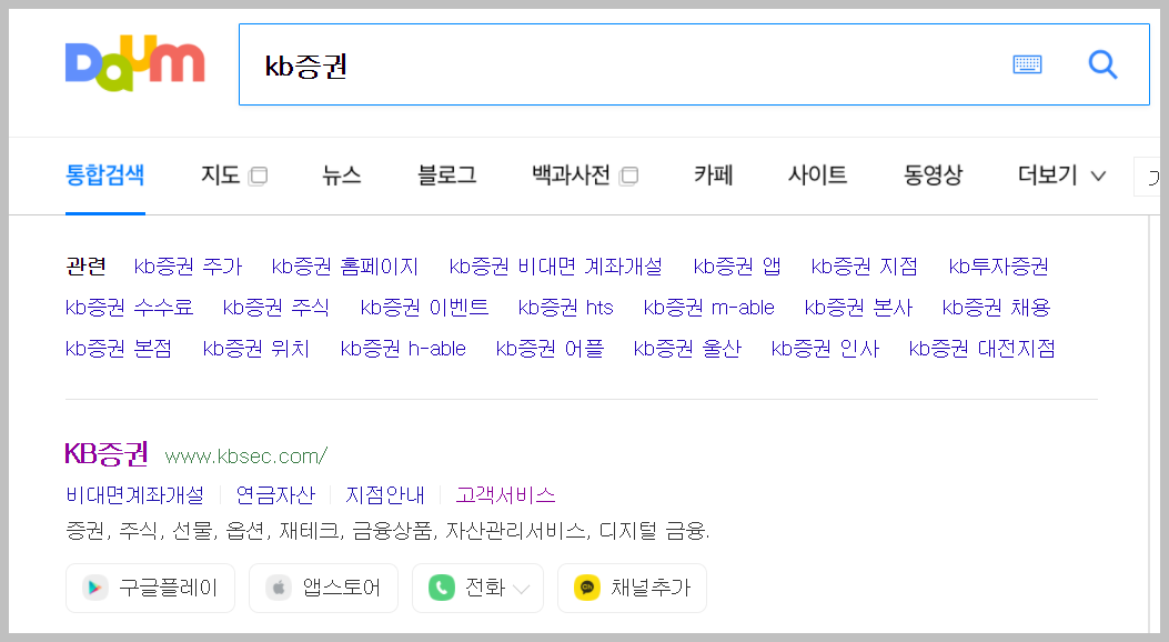 네이버에서도 KB증권이라고 검색을 하면 해당 홈페이지로 들어갈수 있고, 다음에서 KB 증권이라고 검색을해도 들어가실 수 있습니다.