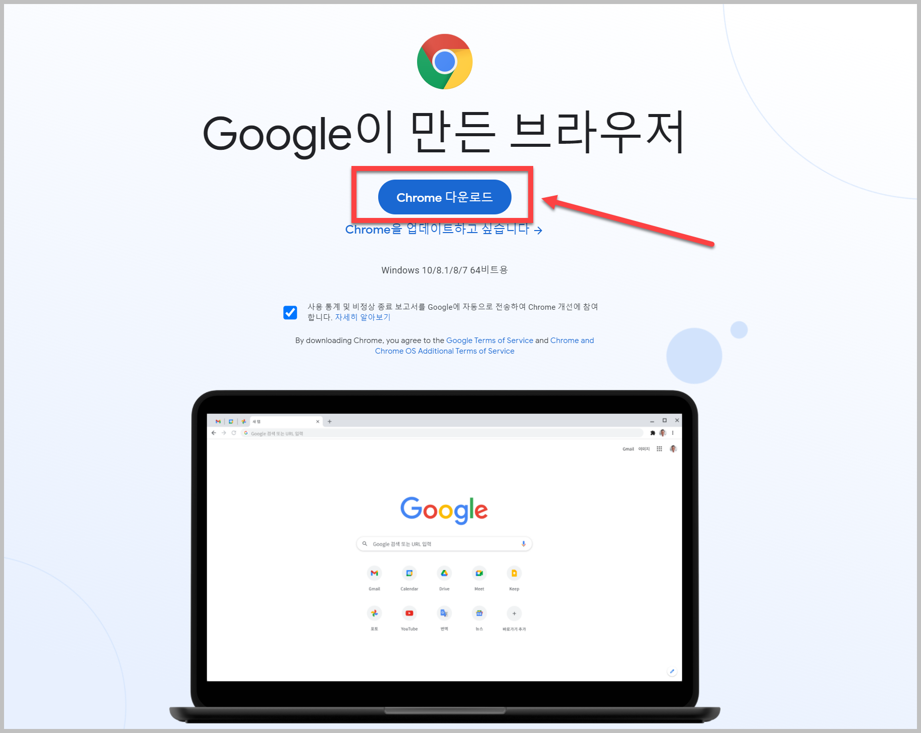 위 링크를 클릭을 하시면 Chrome 설치가 가능한 페이지로 들어가실 수 있습니다. 당연한 이야기지만 크럼브라우저 무료다운로드 입니다. 별도의 비용이 필요하지 않습니다.